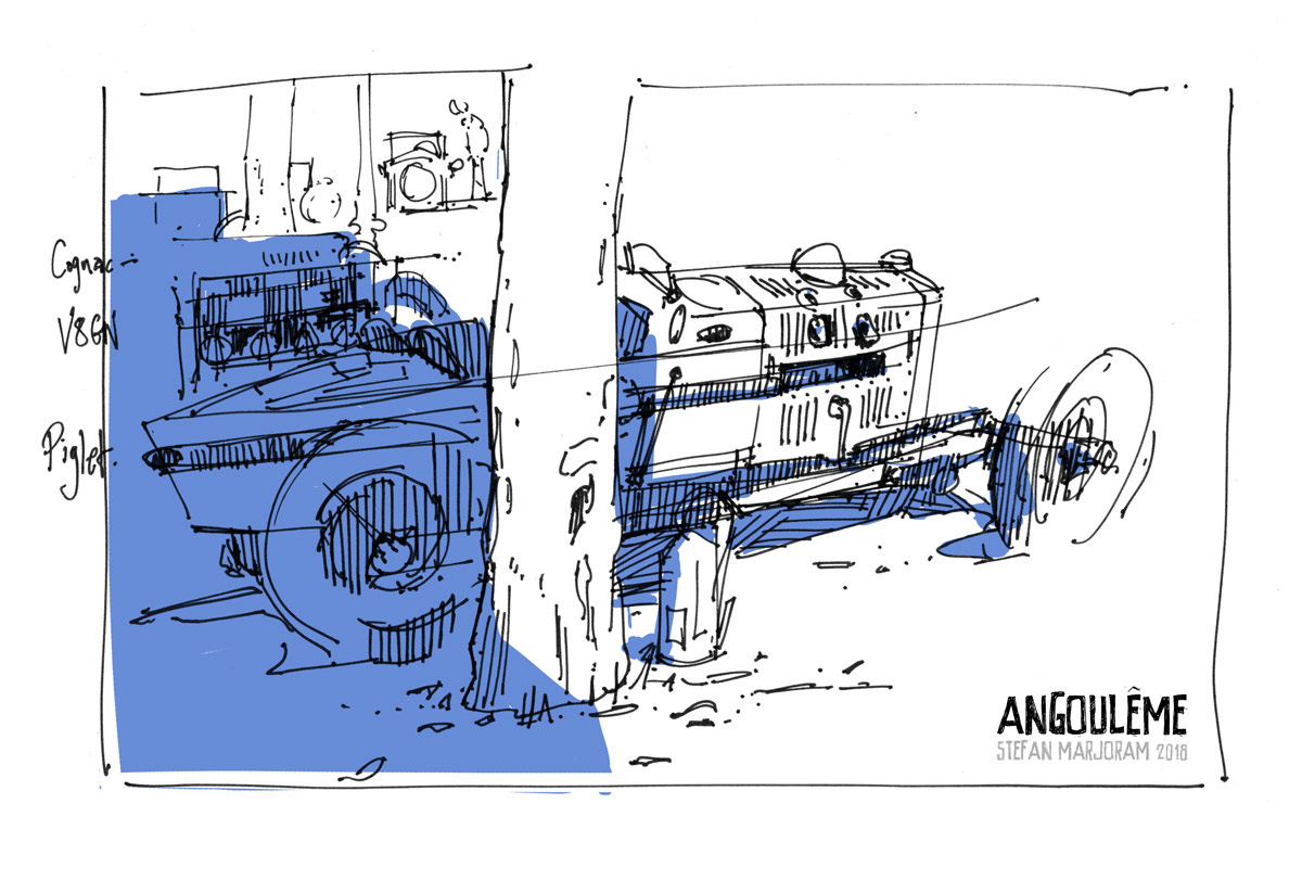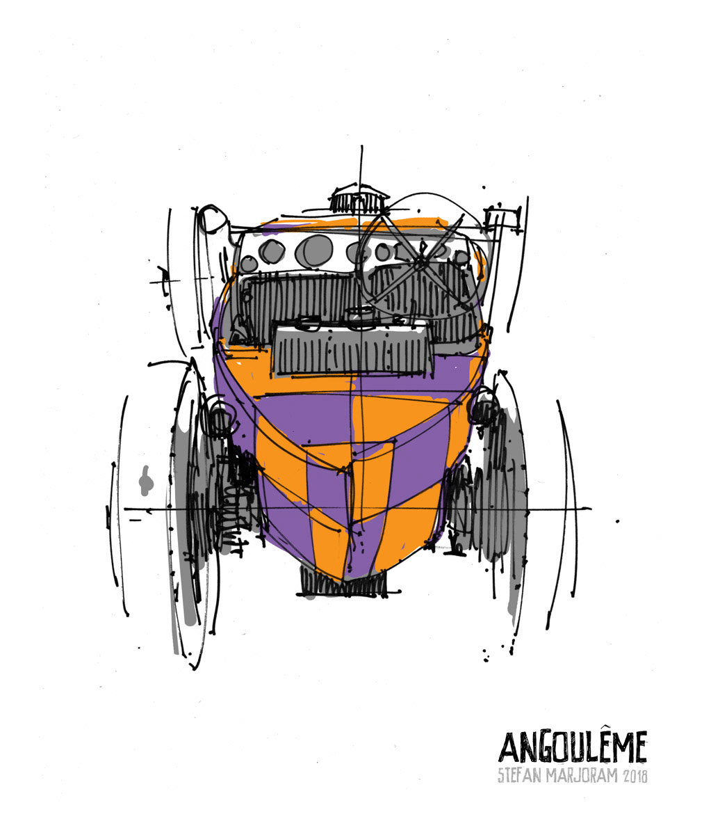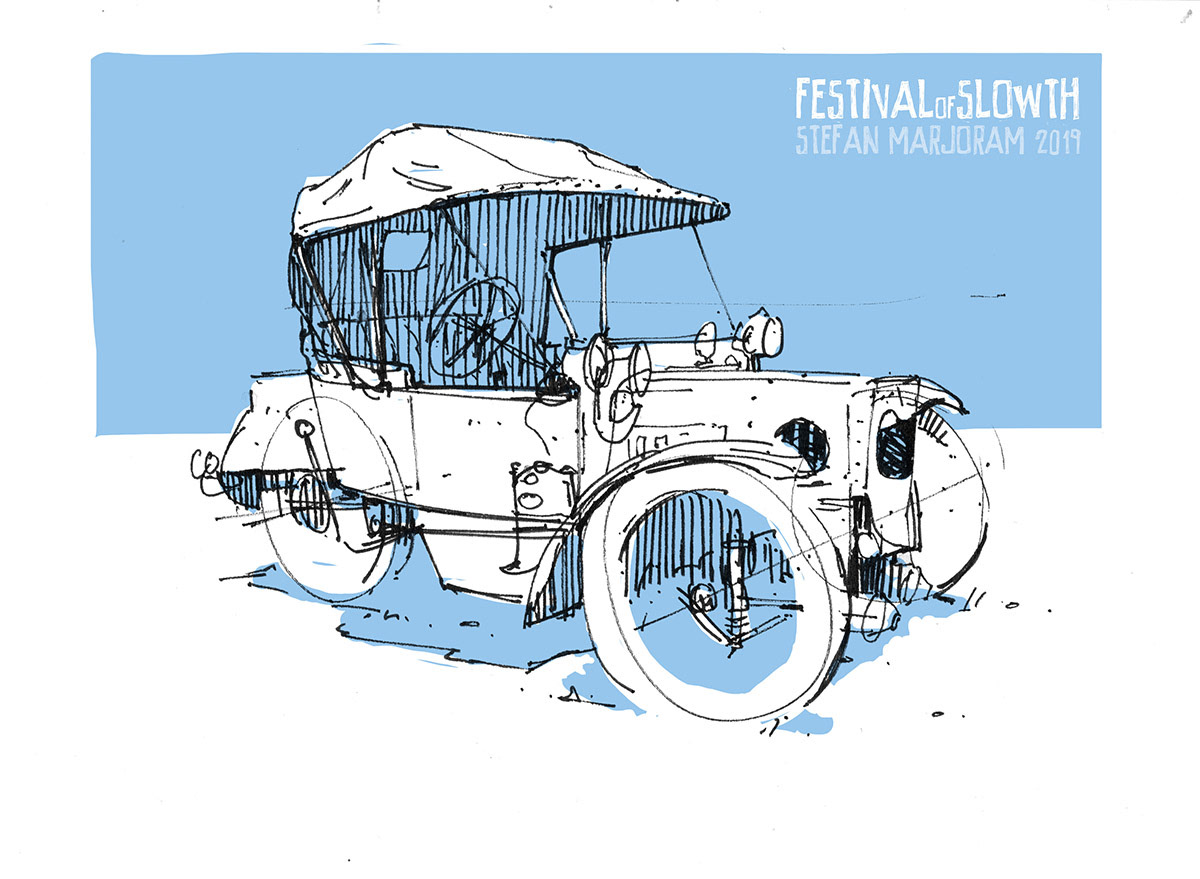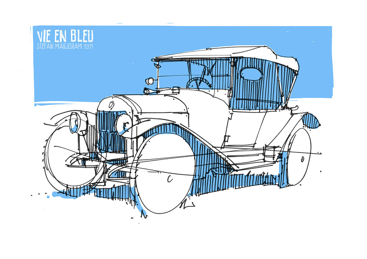 Sometimes I find myself getting too fussy with my pencil drawing. Noodling away with details all takes too long and I forget about the big picture. That's when it's time to switch to a sharpie marker and work fast and loose. Quick pen thumbnail drawings are also a good way of getting lots of images down if you're short of time.