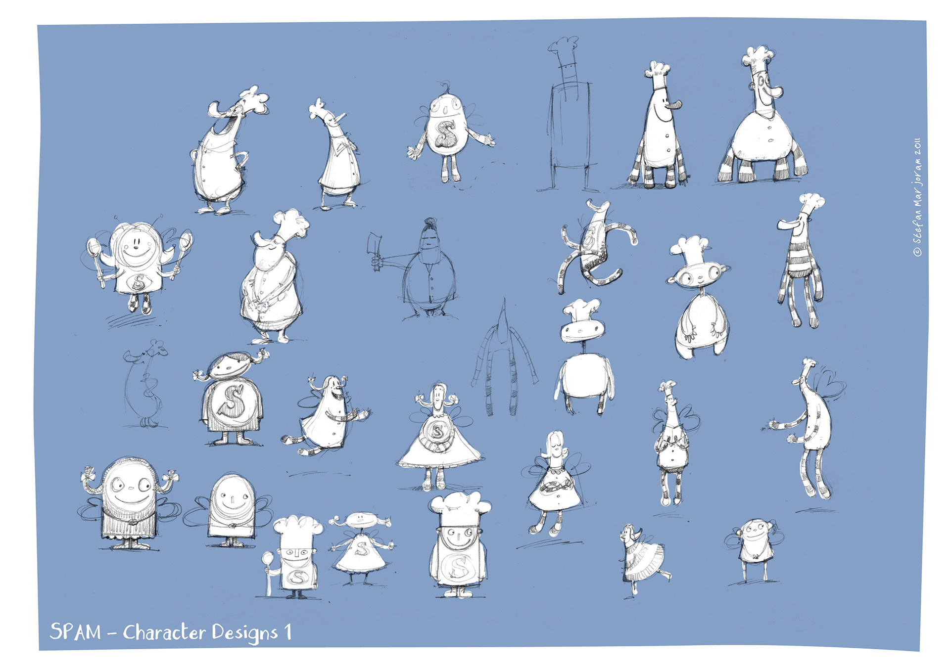 Spam-faeries and Spam-chefs. Had fun doing these - not sure what happened to them in the end.