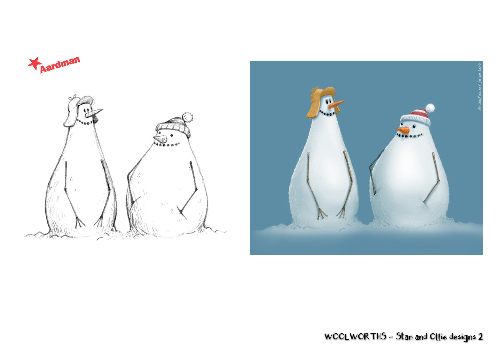 Snowman character designs for Woolworths